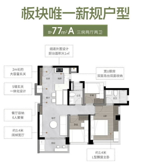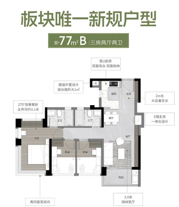 万科·檐屿城主推建面约77㎡、88㎡、103㎡、105㎡、135㎡的三至四房户型。其中,部分户型设计独具匠心,例如88㎡A户型采用可变双开间宽阳台设计;103㎡户型则拥有270°瞰景阳台,让住户能够尽享周边美景。这些设计不仅提升了空间利用率,也增加了居住的舒适度。
