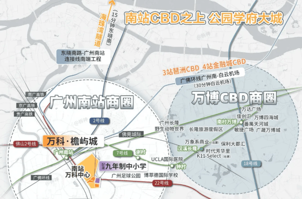 交通方面,万科·檐屿城同样表现出色。项目距离地铁2号线、7号线的广州南站约1.5公里,可通过公交车或楼吧接驳地铁站。广佛环线东环预计于2025年开通,届时将实现3站直达琶洲。此外,东晓南路-广州南站连接线南段也将于2025年建成通车,使南站与海珠城区之间仅需15分钟车程。
