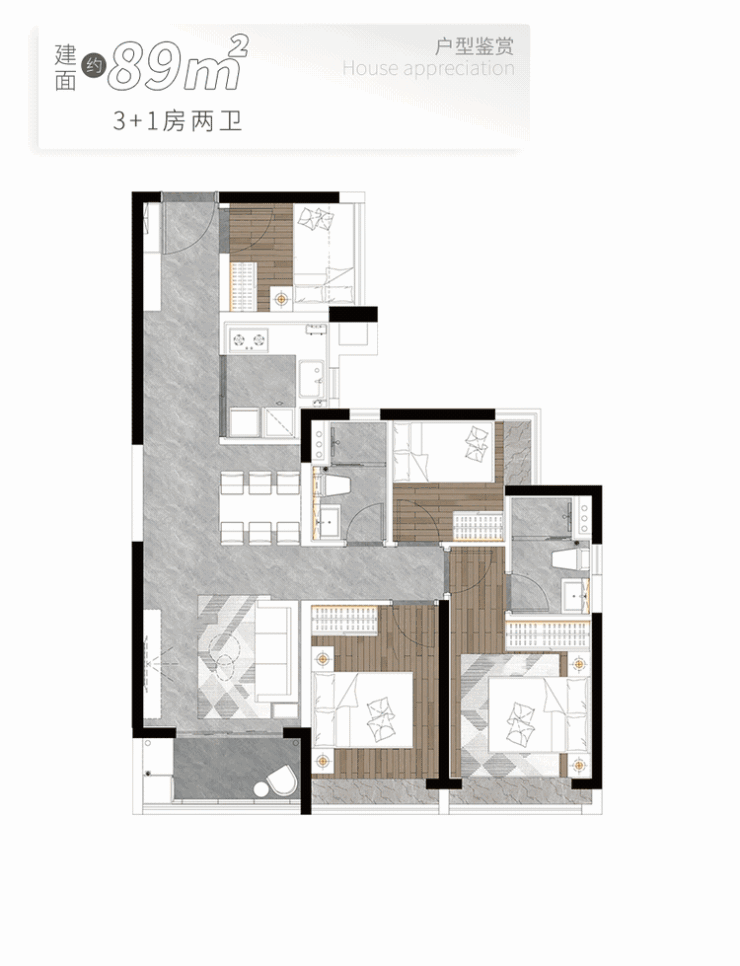 89㎡做了3+1房带主套,产品力还是很能打的。