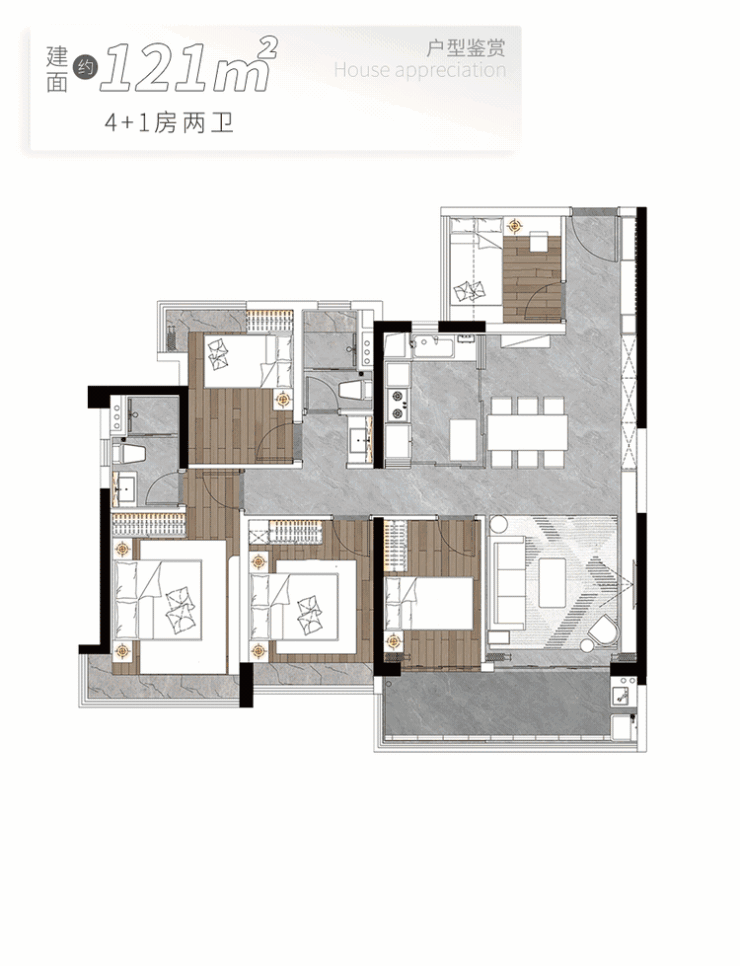 121㎡做了4+1房,这是荔湾唯一一个120+㎡能做5房的产品。