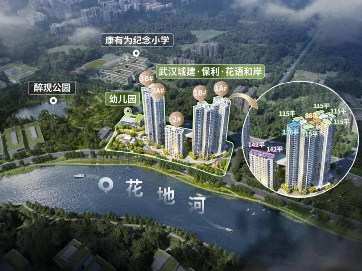 【保利·花语和岸】正位于这一核心区腹地,直线距离花地河仅约50米,东临3.6万㎡醉观公园,真正实现“出则繁华,入则宁静”的理想人居状态。