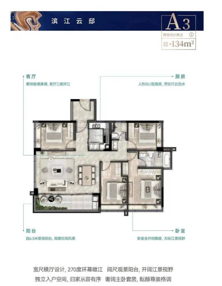 产品王牌:大师设计、全能户型、精工品质、智能科技、园林生态,打造高品质滨水生活范本。