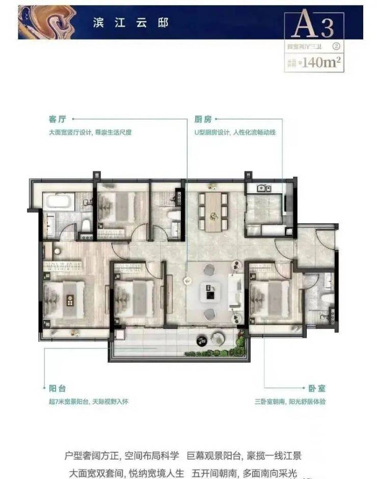 以在售的主力户型为例,其设计充分研究了现代家庭的生活痛点。约85平方米三房两厅一卫:做到“小面积,多功能”,通过LDK(客餐厨)一体化设计、飘窗全赠送、动静分区等手段,实现空间感不输传统90+平方米户型,是年轻家庭首置的绝佳选择。约110平方米三房两厅两卫:经典改善户型,主卧套房设计,配备独立明卫和步入式衣帽间;南北对流,双阳台配置(景观阳台与工作阳台分离),实现了舒适度与实用性的完美平衡。约140平方米四房两厅两卫:尺度阔绰,专为多代同堂或二胎家庭设计。除了宽敞的横厅和主卧套房,还预留了可灵活改造的多功能房,可作为书房、影音室或保姆间。所有户型均采用高窗墙比、大面积玻璃窗设计,引景入室,采光通风极佳。