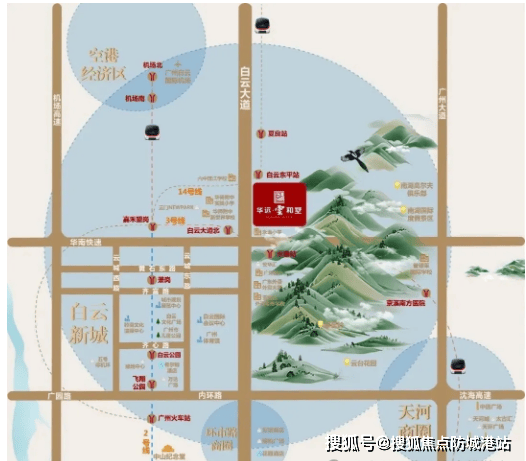 华远·云和墅与华远·大一山庄同位于广州市白云区白云大道北白云山麓,地处白云新城CBD辐射范围内,地理位置得天独厚,既能拥揽白云山原生态自然景观,享受静谧山居生活,又能快速通达全城核心区域,执掌城市繁华,实现“出则繁华,入则静谧”的理想墅居生活。
