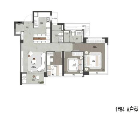 建面约84平三房两卫