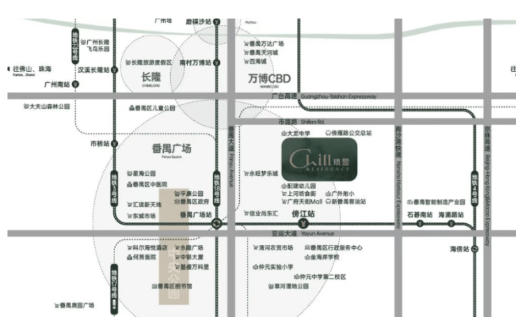 医疗保障:4公里内有番禺区中医院(三甲)、何贤纪念医院(二甲),为健康保驾护航。