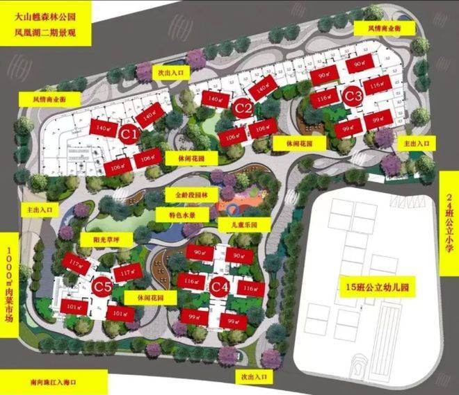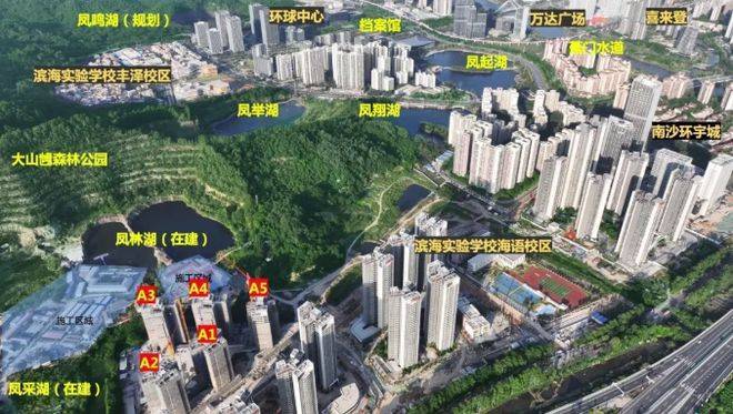 项目享有得天独厚的生态资源,是一座“生长在公园里”的大城。北面背靠约946万平方米的大山乸森林公园,这是南沙的天然氧吧和绿肺。东面紧邻凤凰湖公园(规划共7个湖区,凤林湖、凤采湖已呈现),推窗见湖,下楼即享滨水休闲。社区内部,由国际知名设计公司贝尔高林打造的“海洋之心”主题中央园林,以500米环形跑道串联阳光草坪、亲子乐园、景观泳池等,营造了移步换景的社区内部生态。这种“外部自然公园+内部艺术园林”的双重生态加持,为业主提供了无与伦比的健康、舒压、高品质的居住环境。