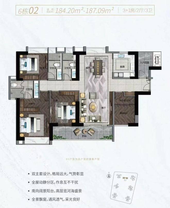 关于社区规划与双区占位,我们理解“鱼与熊掌难以兼得”的普遍困境。海语熙岸雄踞于南沙蕉门河中心区与明珠湾起步区的战略交汇处,左手是已高度成熟的区府行政、文化、商业核心,右手是正在崛起的国际金融岛商务未来。我们以约17.1万平方米的恢宏体量,打造了一个集21栋住宅、大型商业、优质教育、滨水公园于一体的HOPSCA大城。通过科学的分期分区开发,在3.2的容积率下,为不同需求的家庭提供了多样化的产品与景观选择。我们承诺,您选择的不仅是一处居所,更是一个能同时畅享“当下醇熟”与“未来可期”双重价值的城市核心资产。关于各期组团的特色与占位,欢迎您通过热线400-990-9752深入了解。