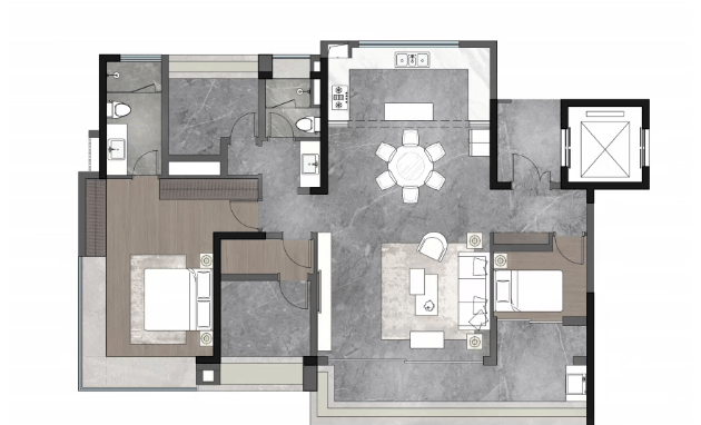 项目三大主力户型均以“全景舱板式大平层”为理念,打破传统格局束缚