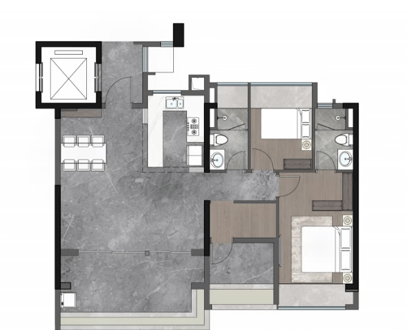 即便是107㎡入门户型,也做到四开间朝南、11.8米超大面宽、5.9米景观阳台,LDKB+X灵活空间可变书房或儿童房。