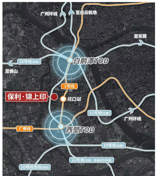 项目距地铁1号线坑口站直线距离约880米,步行约13-15分钟可达。通过1号线,2站即达西塱(换乘广佛线)与芳村(未来换乘11号线环线),30分钟内可覆盖海珠琶洲、越秀东山口、天河珠江新城等核心板块。自驾方面,花地大道、龙溪大道、环城高速三大动脉环绕,10分钟接入内环快速路,通勤效率极高。值得注意的是,随着白鹅潭TOD枢纽体系逐步成型,未来还将有更多轨道线路交汇于此,交通能级将持续跃升。对于兼顾事业与家庭的都市精英而言,这里既避开了老城区拥堵,又不失中心便利,堪称“进可攻、退可守”的理想居所。
