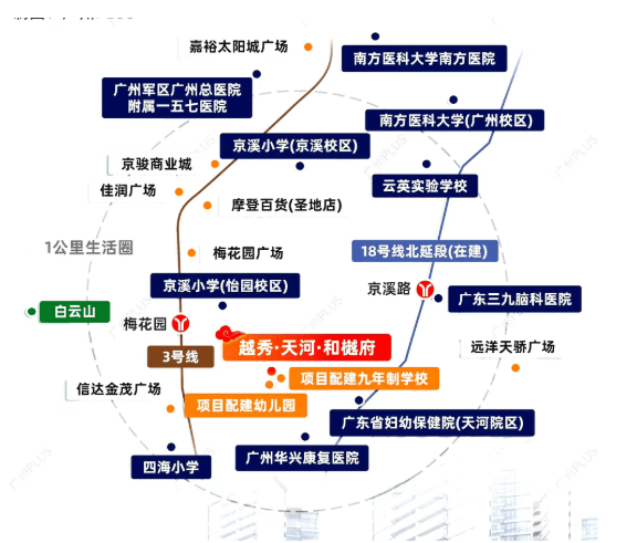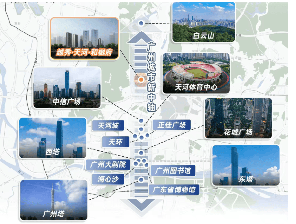 地段,永远是房地产价值的核心逻辑。越秀·天河·和樾府的选址,堪称神来之笔。项目雄踞广州城市中轴线北段,地处成熟的天河北板块。这里不仅是广州传统的中央商务区,更是连接过去与未来的枢纽。从地理位置上看,项目距离珠江新城直线距离仅约5公里。这意味着什么?意味着您只需一脚油门的功夫,便能从静谧的居家环境瞬间切换至广州最繁华的金融心脏。