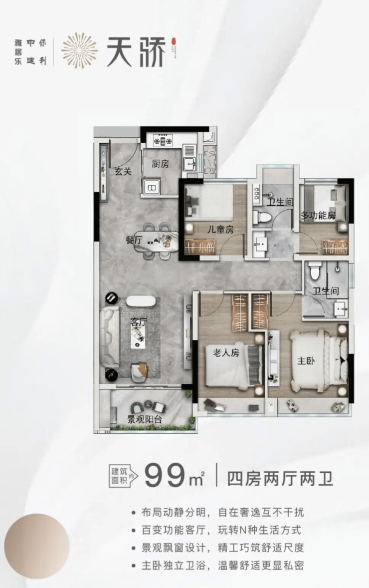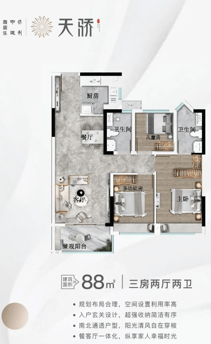 综合来看,中建保利雅居乐·天骄无论是品牌、产品、配套,还是交通、潜力,都展现出了极强的竞争力。对于刚需购房者来说,88㎡的三房户型、完善的教育配套、便捷的交通,能满足安家落户的所有需求,再加上购房补贴与额外折扣,性价比极高;对于改善型购房者来说,低密板式洋房的居住质感、110㎡的舒适户型、成熟的生活配套,能满足对高品质生活的追求;对于投资者来说,空港核芯区的发展潜力、稀缺的产品属性,让项目具备了良好的资产配置价值。