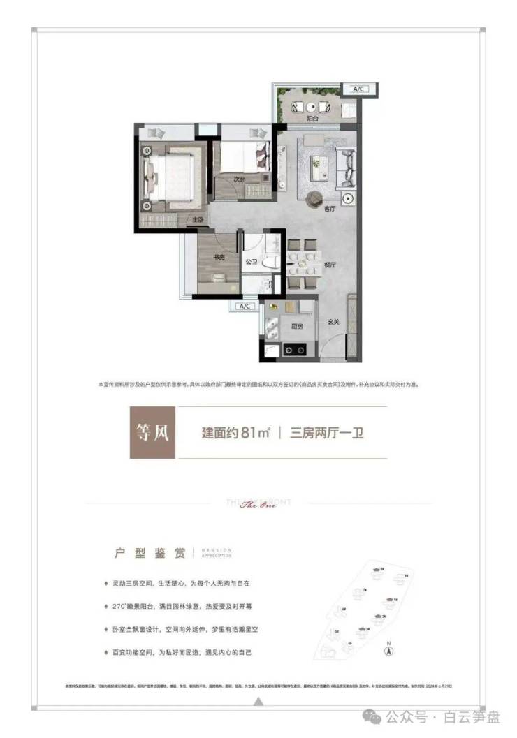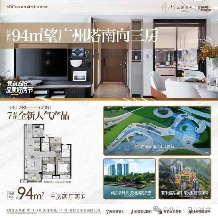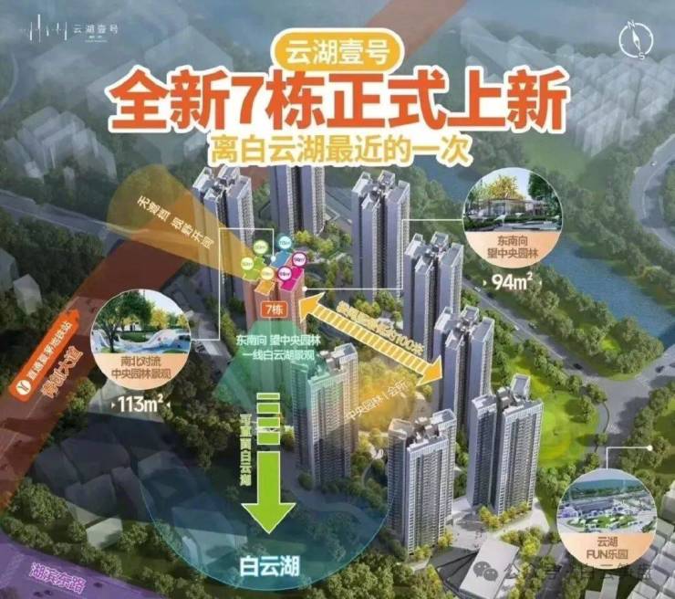 产品方面:目前在售全盘最后一栋7号楼以及8号楼剩余尾货,81-113㎡三至四房,除了81方是北向三房一卫外,其余基本都是南向舒适型,产品档次、居住舒适度以及白云湖景观是这个小区的优势卖点;