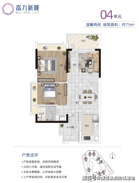 富力新城推出多种户型供购房者选择,面积范围从73平方米至120平方米不等,涵盖三房至四房户型,所有房源均为精装修交付。具体户型如下:
