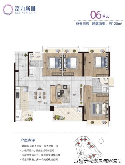 120㎡ 四房两厅两卫:大户型设计,满足大家庭的居住需求,空间利用率高。