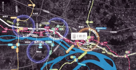 华润黄埔润府位于老黄埔核心区域,北至新安苑,南至黄埔东路,西至丰乐中路,东至乌涌。相比周边项目,它离天河更近,所在的旧中心地段各项配套成熟。距离 5/7 号线双线交汇的大沙东站仅约 300 - 400 米,5 号线串联珠江新城、金融城与黄埔临港经济区,7 号线可畅达科学城、大学城等强产业板块,13 号线二期即将开通连通鱼珠 - 天河,交通优势显著,能吸引多个强产业板块的刚需客户外溢至此。