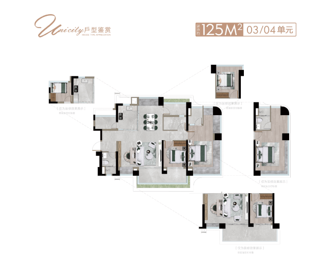 125㎡灵动空间四房:独立玄关入户、全南向宽阔横厅、IMAX无界观景阳台等设计元素,赋予了这个户型更多的可能性和灵活性。