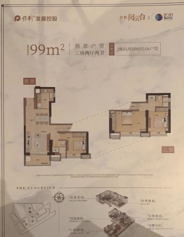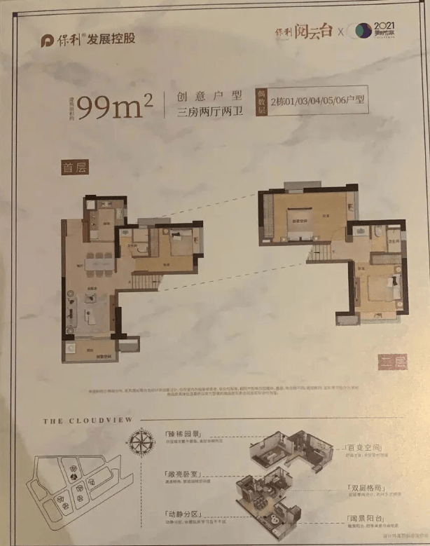 建面约98㎡ 灵动三房:东南/南向瞰景,阳光满屋;创新复式格局,空间倍增;一宅双境,生活更有层次。