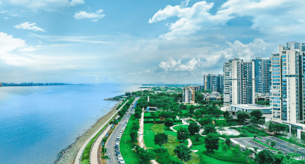 项目东南临海,坐拥1.8公里珠江入海口海景面,直面狮子洋。社区内打造三大中心园林,园林面积高达12万平方米,占总用地超80%,相当于17个标准足球场,绿化率高达35%。