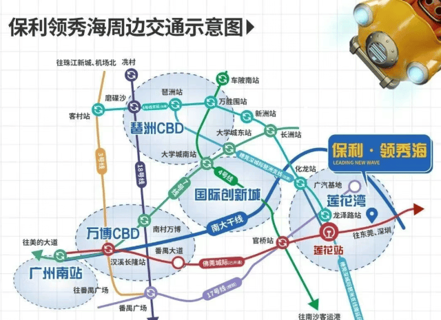 保利领秀海位于番禺石楼镇莲花湾片区,地处琶洲以南,是广州“东进南拓”战略的重要节点。过去,这里因配套尚在起步阶段而略显沉寂;但随着南大干线全线贯通,区域交通格局彻底改变。