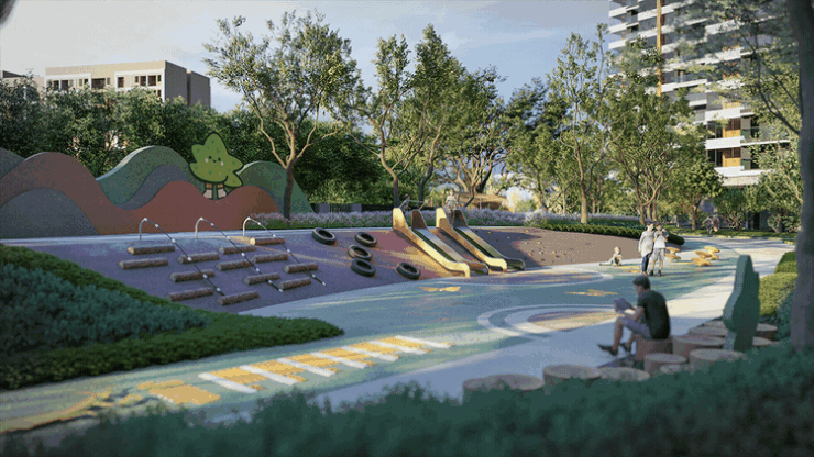 云筑上品在社区营造上颇具巧思。项目内部规划三条独立动线:归家主轴、游园步道、非机动车通道,最大限度减少人车交叉,保障儿童安全。园林设计以“自然探索”为主题,针对0-3岁幼儿设置互动认知墙、昆虫植物科普地雕;7-12岁孩子则可在浮岛滑梯、树屋、迷你篮球场尽情释放活力。南侧还配建约1.2万㎡体育公园,未来将成为居民晨练、遛娃、社交的重要场所。此外,项目毗邻白云国际会议中心、广州市体育馆、城市规划展览馆等四大文化地标,周末看展、观赛、听讲座皆触手可及,精神生活同样丰盈。