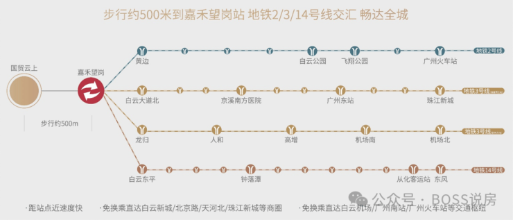 国贸云上距离嘉禾望岗地铁站约500米,这里汇聚了2/3/14号线,快速抵达白云机场、珠江新城、白云新城、体育西等商圈。