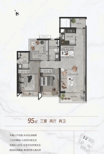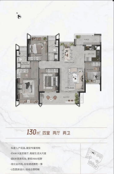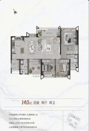140平方米横厅设计,南北对流,兼具优质的景观视野和居住舒适度。