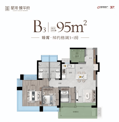 约85㎡三房、约95㎡3+1房、约105㎡四房、约125㎡四房等多种户型可供选择