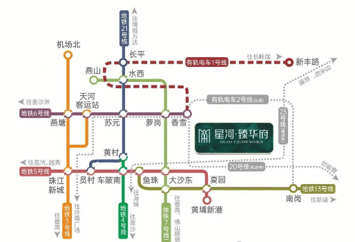 交通便利,地铁6、7、21号线贯穿其中,连接金融城、鱼珠等主要商务区
