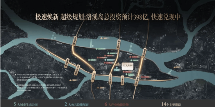 首先,从板块站位来看,项目位于广州第三中轴——洛溪岛的“心脏”。这里被定义为“比肩二沙岛”的世界级岛居坐标,总投资预计398亿元。根据《番禺区国土空间规划》,洛溪岛将建成集创新、文化、生态于一体的国际住区。