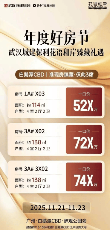 在荔湾白鹅潭商务区,有一个热度持续居高不下的楼盘 —— 保利花语和岸,如今它已进入清盘倒计时阶段,网签率突破 88.4%,实际销控更是超过 9 成,剩余房源以 113㎡和 138㎡户型为主,其中 113㎡还有不少楼层可选,清盘价 510 万起,138㎡则主要集中在低层,总价 710 万起,对于想扎根荔湾核心区的购房者来说,这无疑是难得的 “上车末班车”。