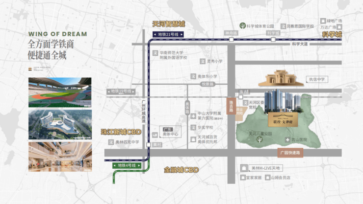 虽然联投文津府距离最近的地铁站(21号线、4号线)直线距离约为3公里,但项目并未因此陷入交通不便的困境,而是通过多元化的交通解决方案,构建了高效便捷的出行网络。项目约200米处设有公交站点,可接驳4号线与21号线双地铁线路,为依赖公共交通出行的业主提供了灵活的换乘选择。更为重要的是,黄村地铁站仅需乘坐5站即可直达珠江新城,这一通勤时间对于在市中心工作的上班族而言,具有极高的性价比。此外,项目距规划中的19号线珠吉站仅约800米,虽然开通时间尚待确定,但这一规划无疑为未来的交通网络增添了新的活力,预示着项目交通潜力的进一步提升。