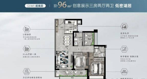 低密度社区:采用纯板式设计,全南向布局,专梯独户,享有稀缺的山景和湖景。