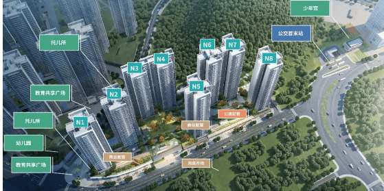 项目规划总用地约 61.5 万㎡,分 6 期开发涵盖住宅、商业、学校及仿古建筑群,总户数约 15000 户,商品房占 8000 套左右。建筑以现代风格为主,搭配约 35% 绿化率与 1:1.1 车位比,梯户比为 2 梯 4 户或 2 梯 6 户,物业费 2.8-3.18 元 /㎡・月。2025 年岭南特色花厅坊商业街已开业,引入超 100 家品牌,兑现 “自为一城” 的配套承诺。