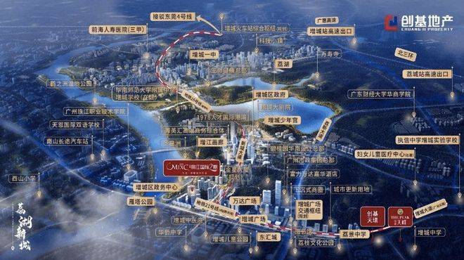 创基天璟位于广州增城区的核心地段荔湖新城,是创基集团继创基天峰与创基丽江国际之后的全新力作。凭借创基11年的精湛建造经验和深厚品牌沉淀,该项目秉承匠心打造理念,致力于为城市提供高品质豪宅示范。项目的选址坐拥增城CBD核心区域,紧邻荔湖新城政务中心,仅2.5公里的距离,使得交通便利与城市配套尽收眼底,成为广州东进战略中的重要置业和投资选择。项目不仅承载着创基品牌的高端定位,更体现了与城市共生的理想愿景,将现代都市生活与自然生态环境完美融合,营造出独特的城央豪宅体验。