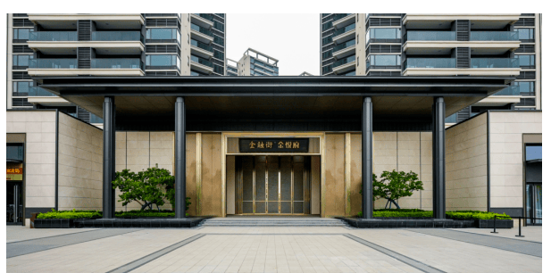 金融街金悦府独占潭洲水道和文海河双江鳌头,拥有270度南向头排江景,周边环绕着多个公园如文海河横江头公园、文海河体育公园及十里滨江公园,生态环境优越。项目内部还打造了超过2万㎡的中央大园林,在寸土寸金的广佛交界地带尤为珍贵。其6.9米挑高的门楼设计彰显高端品质,而围合式的楼栋布局则确保了每户的良好采光和通风效果。