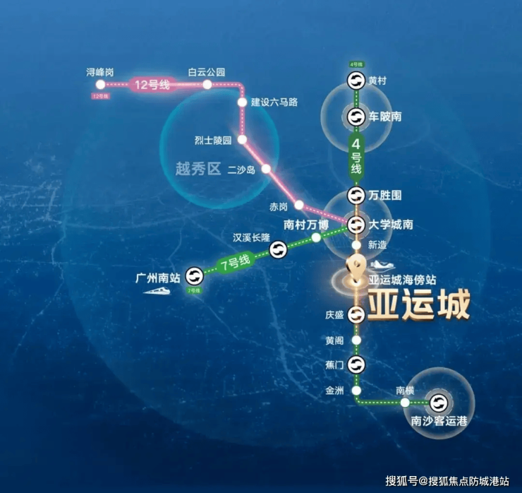 亚运城位于番禺区亚运大道与石清公路交汇处,北接大学城,南连南沙自贸区,东临莲花山港,是广州“南拓”战略的核心节点。