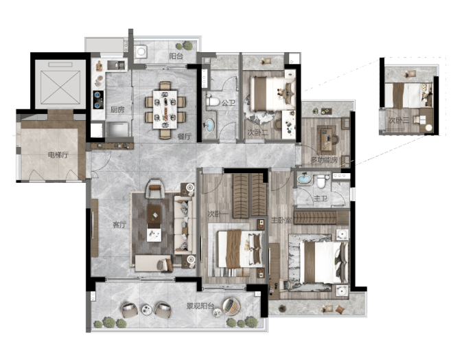 开控城投云锦由广州凯龙置业有限公司开发,该公司隶属于广开控股集团,后者拥有约1200亿资产,资金实力雄厚。此外,项目还有广州城投和广报实业的参与,前者曾成功打造了广州塔、海心沙等城市地标,后者则是广州日报报业集团的重要组成部分。这种强强联合确保了项目的高质量建设和长远发展。