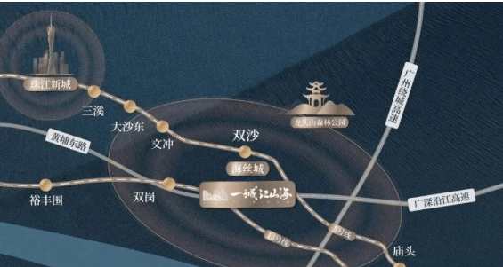中建海丝城地理位置优越,距离地铁5号线双沙站直线距离仅约100米,距离地铁13号线双岗站直线距离不到500米,为居民提供了便捷的公共交通条件。此外,项目毗邻黄埔东路、中山大道等主要干道,通过广深沿江高速与广州绕城高速便捷连接周边城市,无论是自驾还是地铁出行都非常方便。