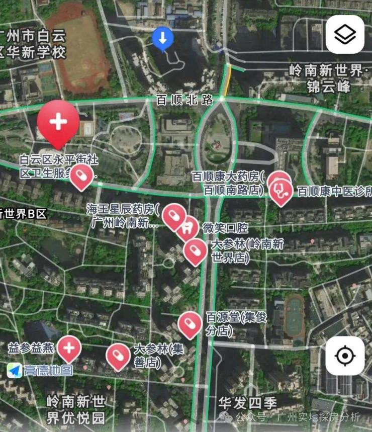 项目近揽广州医科大学附属市八医院、南方医科大学南方医院白云分院(二期在建)、广东省人民医院白云院区(规划)等。