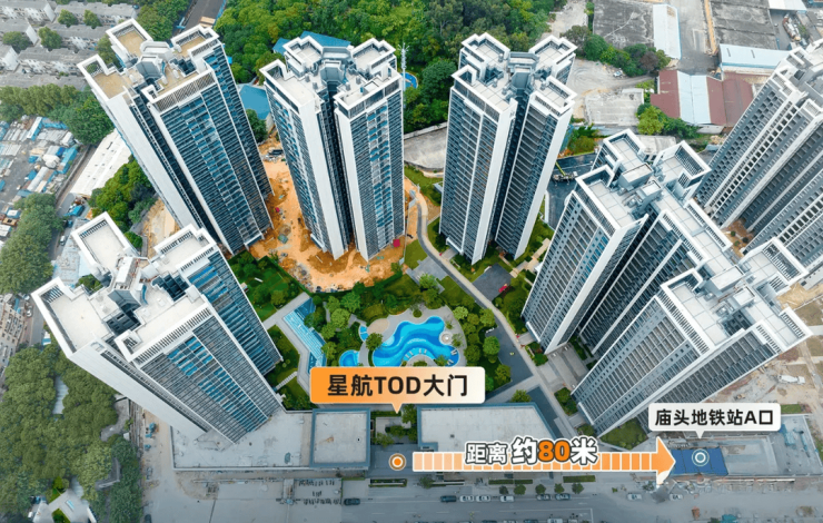 5号线庙头站直线距离约80米,简直就是地铁站就在家门口,一线可直达珠江新城;
