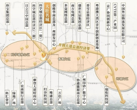 大壮名城坐落在科学城的核心区域,这里是广州重要的政务中心、商贸中心和发展中心。项目周边聚集了大量知名企业总部,如南方电网总部、广州农商行总部等,为居民提供了丰富的就业机会。此外,项目距离地铁6号线、21号线苏元站及新开通的7号线二期站点都非常近,轻松连接广州各大重点板块与商圈,形成了便捷的生活圈。