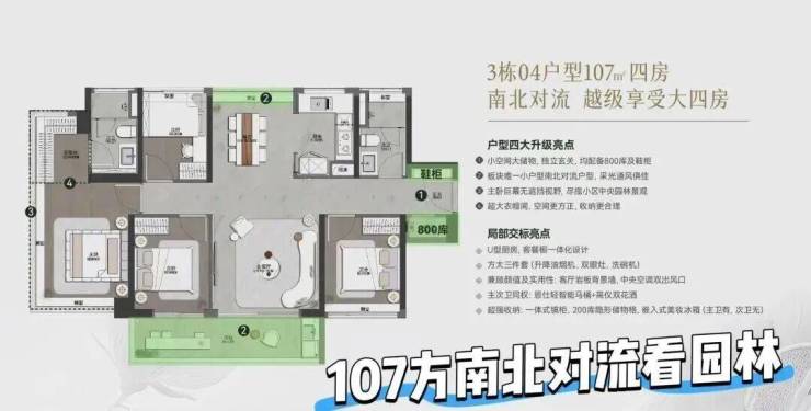 布局:约12.8米南向面宽,搭配全景舱飘窗;主卧带270°环幕飘窗与独立衣帽间;入户玄关柜+卧室收纳系统,储物空间充足。