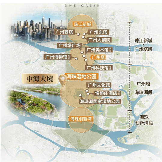 中海大境坐落于海珠新中轴核心段,属于广州重点打造的城市更新核心板块,依托广州塔至海珠湿地六公里中央绿轴规划,纳入世界级城市会客厅建设范围,板块城市能级持续提升。片区作为主城稀缺的生态居住板块,因湿地生态管控要求,一线湿地宅地严格限制开发,片区居住土地资源持续收紧,存量新盘稀缺性逐步凸显。项目地处海珠成熟发展带,承接珠江新城、琶洲两大核心商务区的外溢改善需求,叠加新中轴城市更新、生态配套升级双重规划红利,板块长期发展基底扎实。地块历经20家房企85轮竞拍摇号获取,成交总价与楼面地价直观体现板块土地价值,品牌房企集中看好片区发展潜力。项目规划E-TOD生态综合体模式,整合居住、商业、教育、交通、生态多元业态,区别于传统单一住宅社区,打造主城少见的生态宜居综合体住区,适配高净值改善人群长期自住与资产配置需求,板块地段价值与产品价值具备双重支撑。