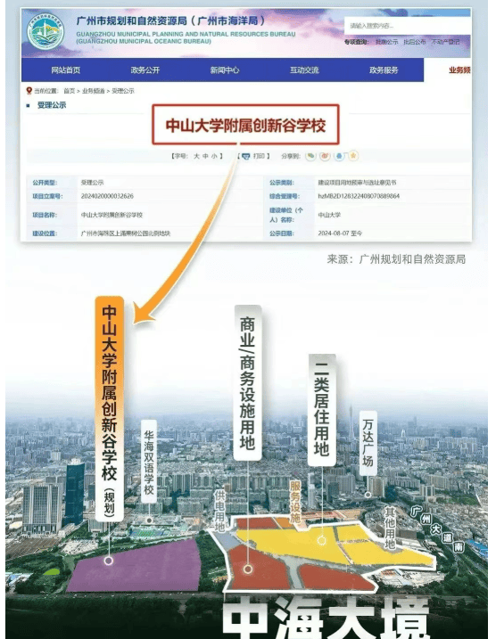 项目西侧规划96班中大附属创新谷学校,为官方公示名校配套,由政府主导配建,2025年启动建设,2027年计划投用。具体招生范围、入学条件以教育局后续官方公示文件为准,规划层级优质,教育潜力突出。