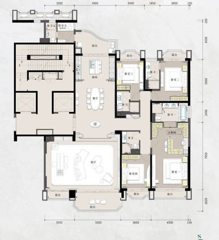 主力产品为大尺度江景平层,空间布局强调南北通透与功能分区合理性。