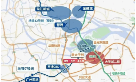 越秀大学星汇城距离地铁4号线新造站仅1.6公里,随着广医南路的开通,步行距离将缩短至不到1公里,极大提升了出行便利性。驾车通过南大干线,仅需10分钟即可到达番禺万博CBD,前往琶洲和珠江新城也仅需大约30分钟,充分满足现代都市生活的需求。