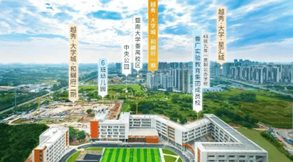 问:小区内的教育资源怎么样? 答:项目配备从幼儿园到初中的全程优质教育资源,特别是九年制公立中小学——广州大学附属小学和广州大学附属中学,教育资源丰富。