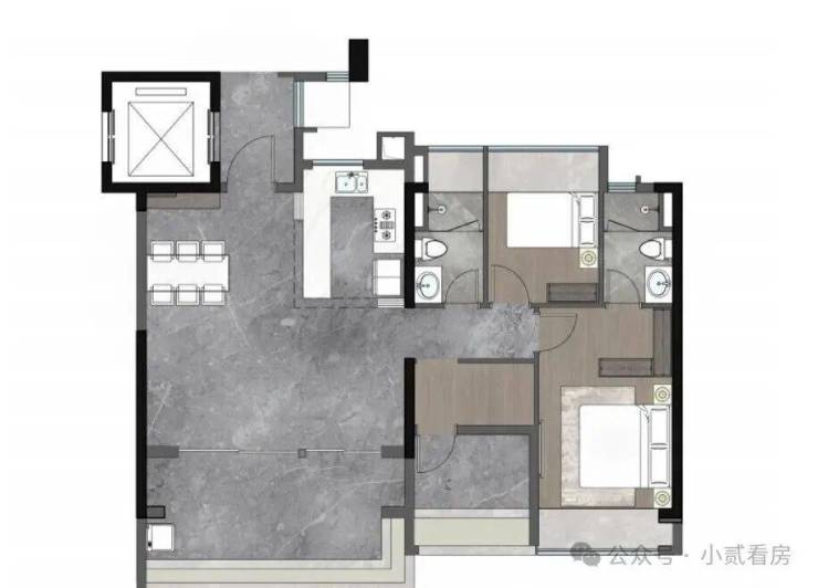 约107㎡全景会所奢宅,四开间朝南,约11.8米面宽,纵享豪宅尺度,LDKB+X通透宽厅,联动约5.9米景观阳台,随心切换,U型厨房,餐厨联动,派对式奢境享受。